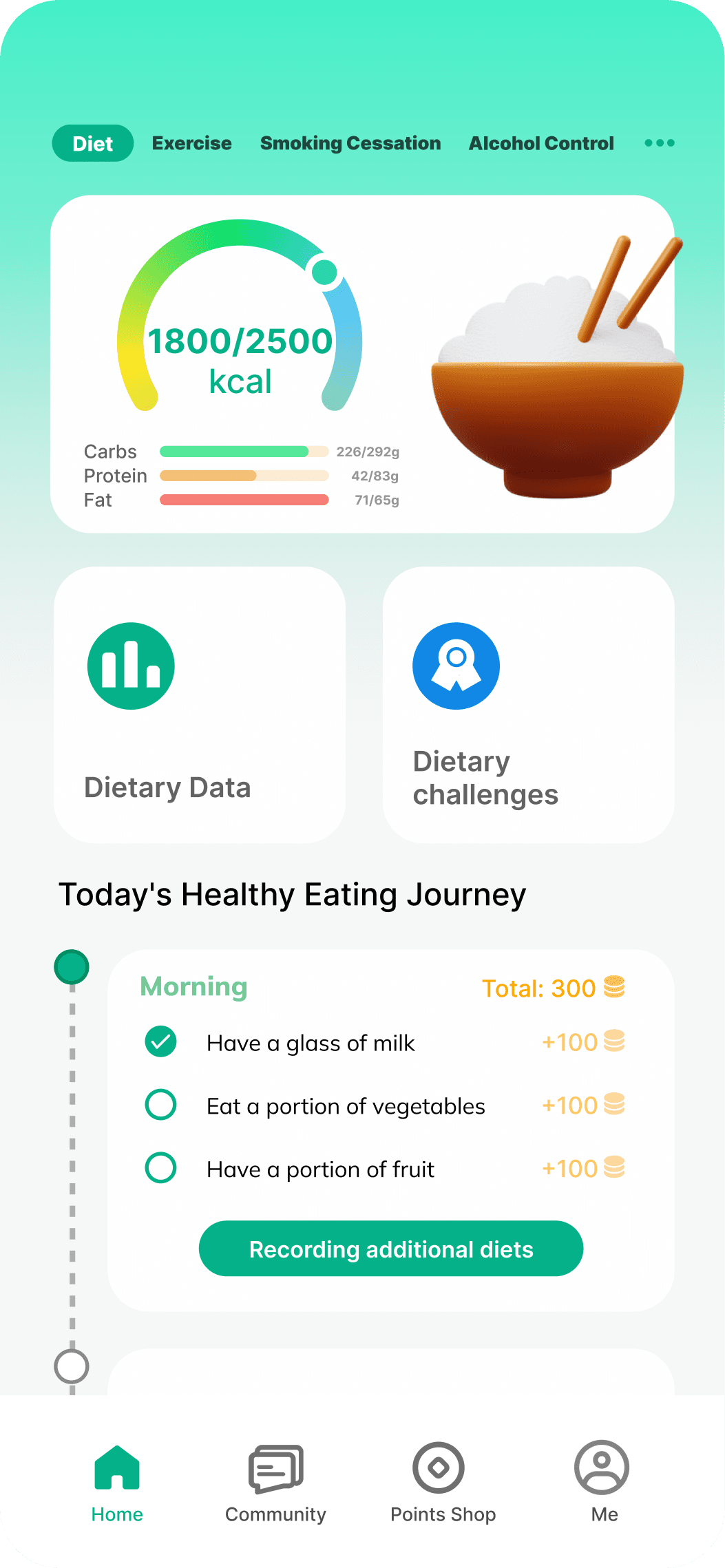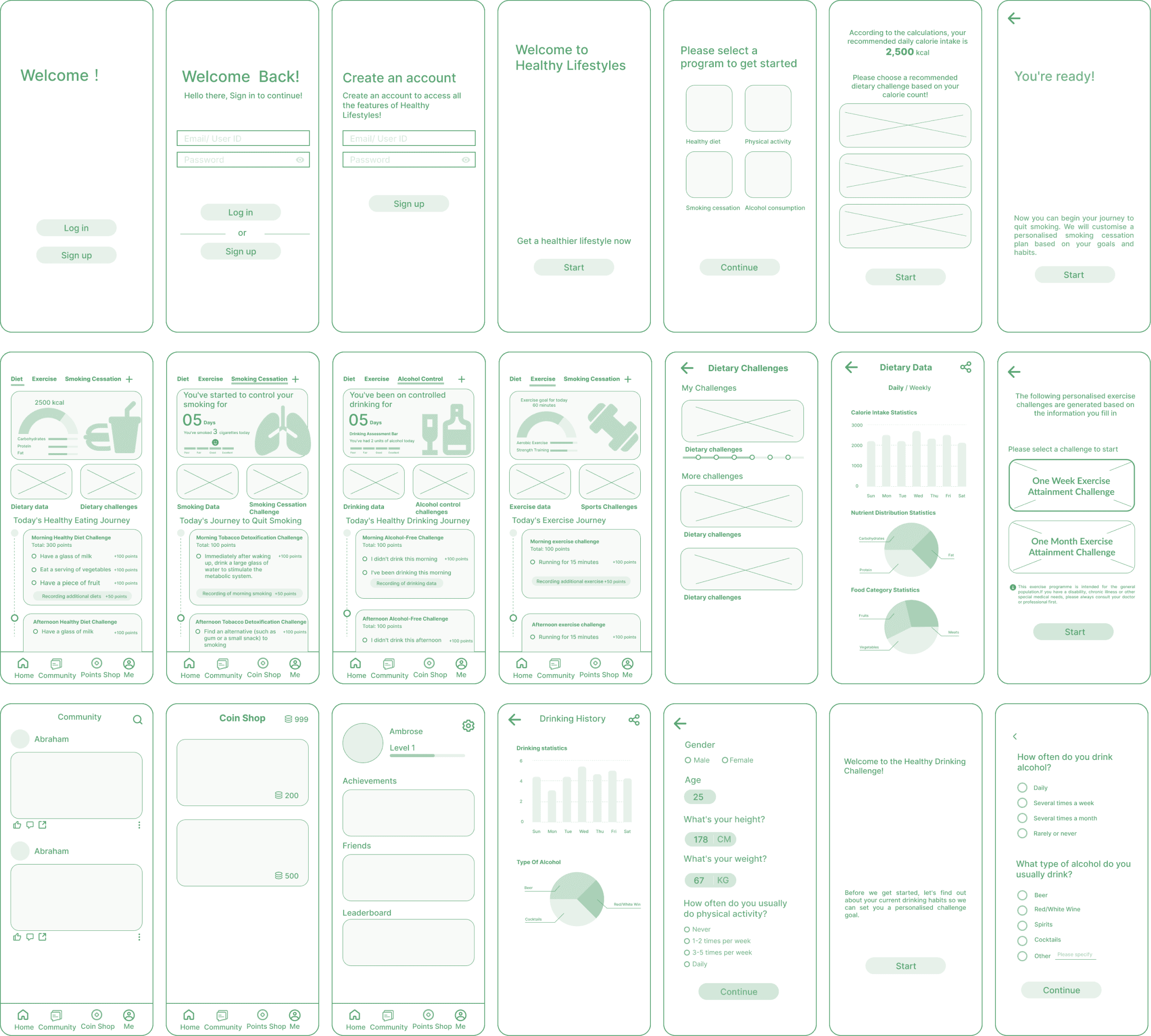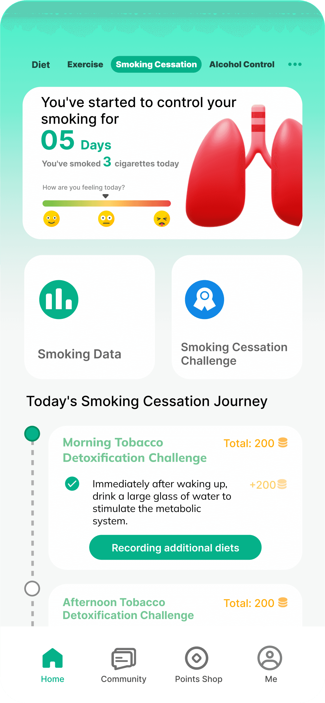 Non-communicable diseases (NCDs) are one of the leading causes of death worldwide, and they are closely linked to people's lifestyles. This project aims to design a healthy lifestyle app covering four key areas: diet, physical activity, smoking cessation, and alcohol control. By incorporating gamification principles, the app is designed to increase user engagement.