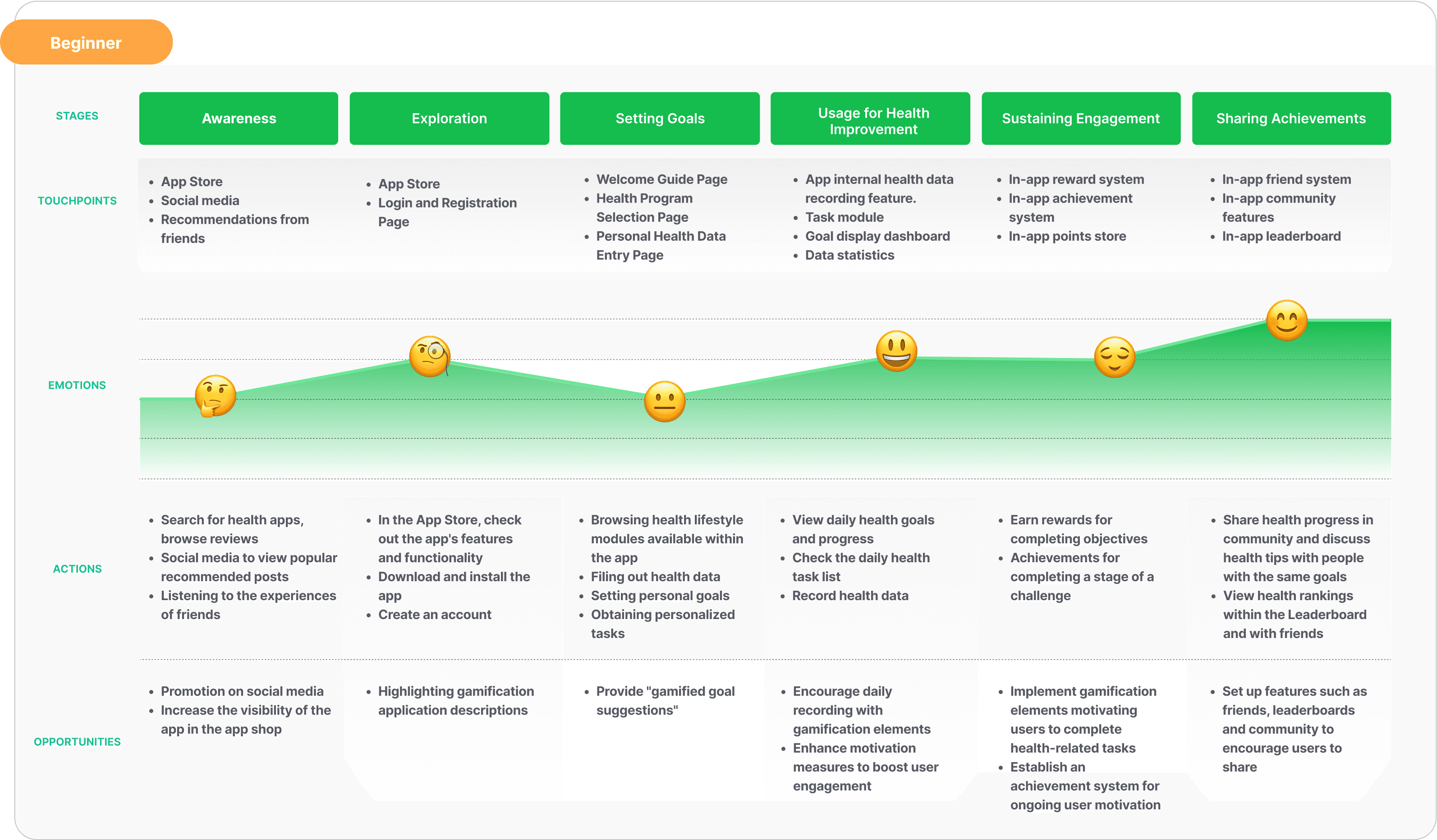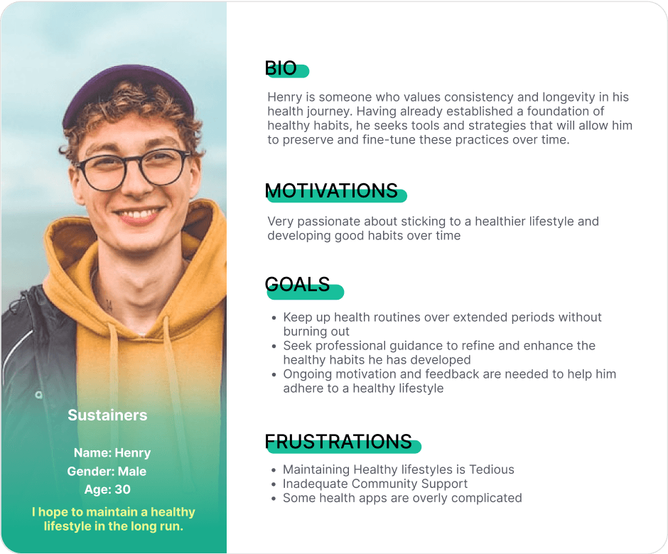 They were beginners, and healthy lifestyle maintainers. After understanding the main characteristics of these two user groups, personas were designed for each type of user.