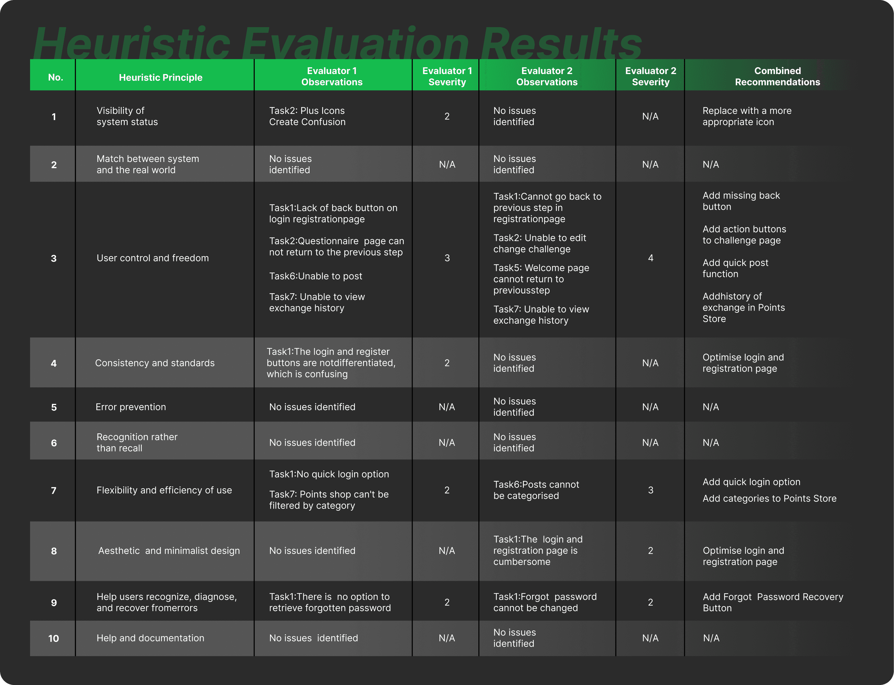 At this stage we invited two evaluators with professional backgrounds in service design to conduct a heuristic evaluation of the low-fidelity prototype, which is a cost-effective way of identifying usability issues in the user interface at an early stage so that they can be addressed during the iterative process. This is an expert evaluation method where one or more evaluators independently examine the user interface and identify problems based on recognised usability principles.