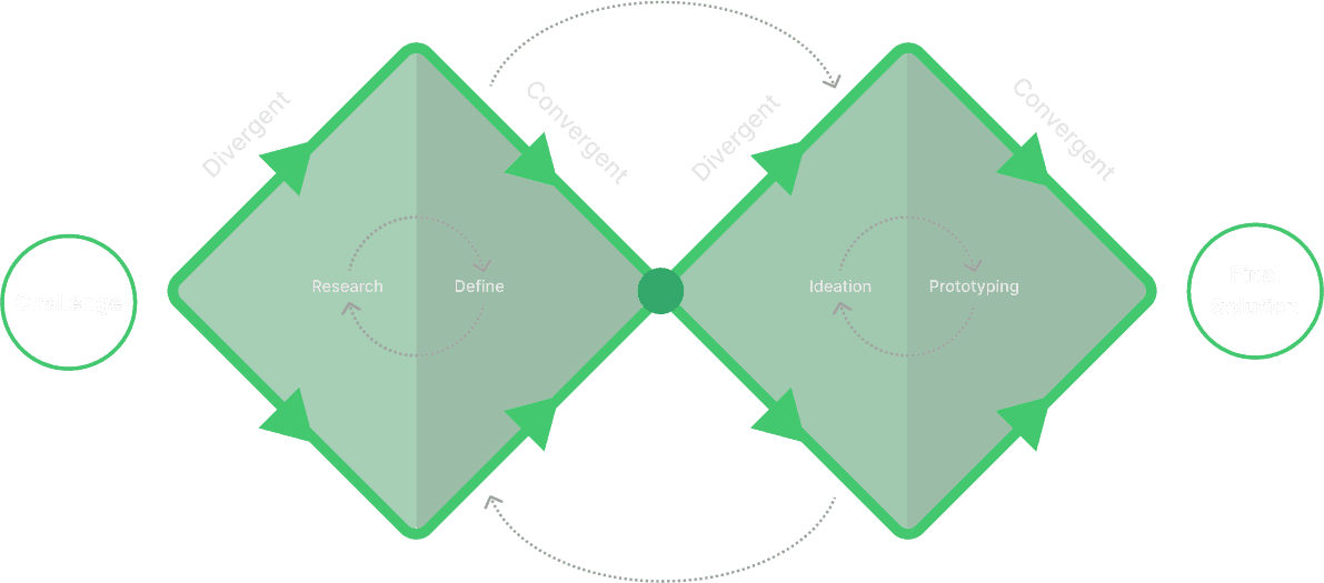 The design process for this project will utilise the UK Design Council's Double Diamond Model, a framework widely used in the field of design thinking. The model emphasises the concept of user-centred design. It consists of four distinct phases: Discovery, Definition, Development and Delivery, each representing a specific stage in the design process.