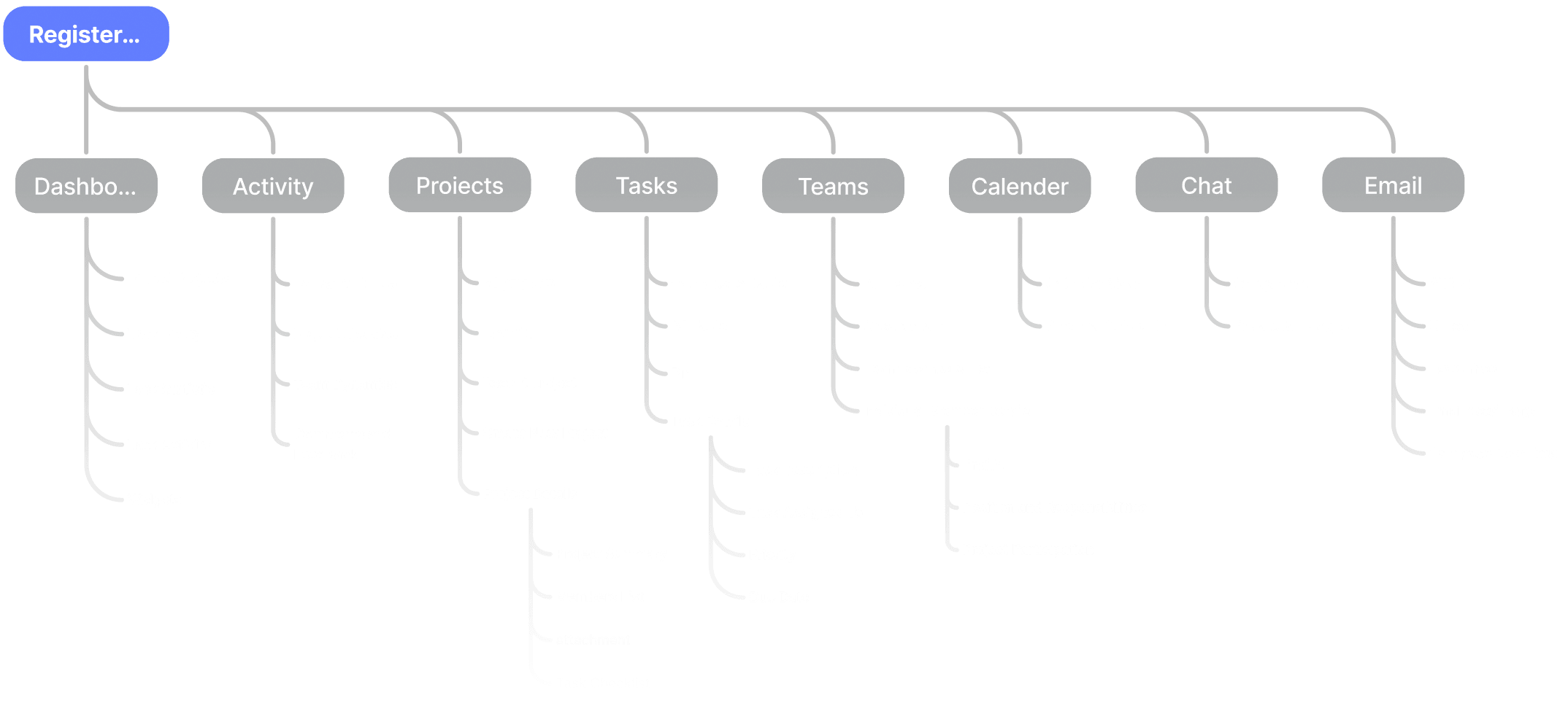 接下来,我们必须确定应用程序的结构我们制作了Information Architecture(IA)。IA是对产品或服务中信息的组织和结构进行设计和规划的过程。为此,我们将主要功能和优先级最高的功能分门别类,成为主导航的各个部分。