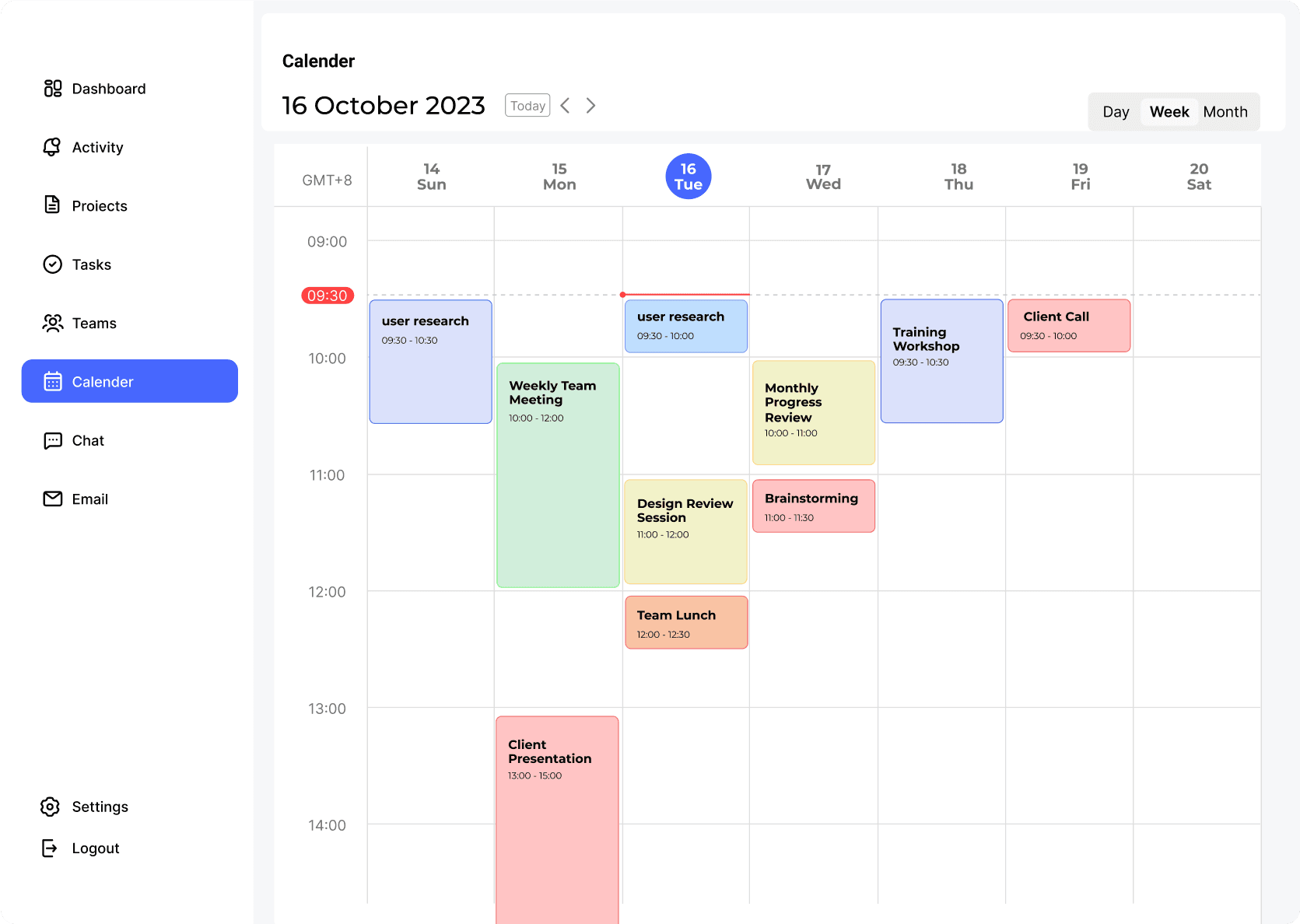 日历页面显示了用户的日程安排和重要事件,用户可以查看项目的截止日期、会议安排、团队活动等。日历功能还支持用户创建和编辑事件,并与团队成员共享日程安排。